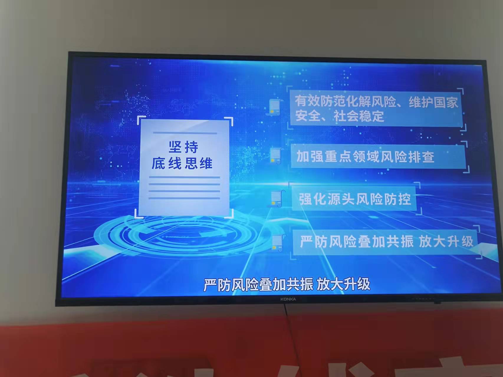 我部充分利用营业部大厅资源,在营业部柜台摆放“雪球产品”、“红色金融史”等宣传资料供投资者随时翻阅,提高了投资者的金融素养;在营业部大屏幕循环播放本次活动主题的宣传标语,营造良好的线下宣传气氛;每天在大屏幕滚动播放“维护网络安全,清朗网络空间”的宣传系列影片,通过一起起金融案件的生动演绎,向投资者弘扬了金融正能量,既增强了投资者的学习金融知识的乐趣又加强了风险提示,防范非法金融活动。