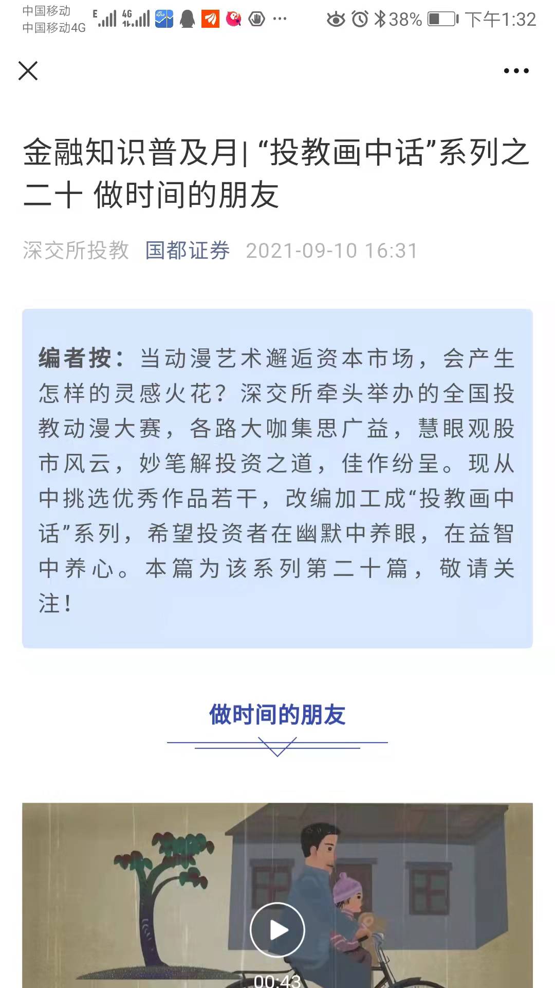 我部组织员工在微信群和朋友圈积极转发总部发布的金融知识普及月系列文章和视频,向投资者传达了科学的投资理念,普及了丰富的金融知识,扩大了宣传范围。