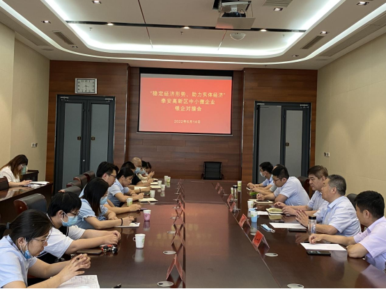 为认真落实国务院《关于印发扎实稳住经济一揽子政策措施的通知》(国发[2022]12号)文件及省、市经济工作会议精神,加强政银企合作,提高金融服务实体经济实效,解决中小微企业融资难、融资贵的问题,6月15日,财政财务管理部联合农业银行泰安分行召开中小微企业银企对接会。农业银行泰安分行普惠金融部,农业银行高新区支行及区内14家中小微企业负责人参会。