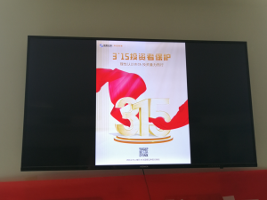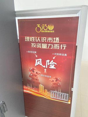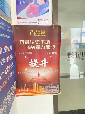 为了使投资者感受到浓厚的投教宣传氛围,在营业部大厅显着位置张贴了印有“理性认识市场,投资量力而行”字样的海报,投教园地张贴给读者一封信,电子显示屏循环播放着“坚持价值投资、理性投资,远离炒小、炒差歪风”等3·15主题活动口号和投教视频素材。