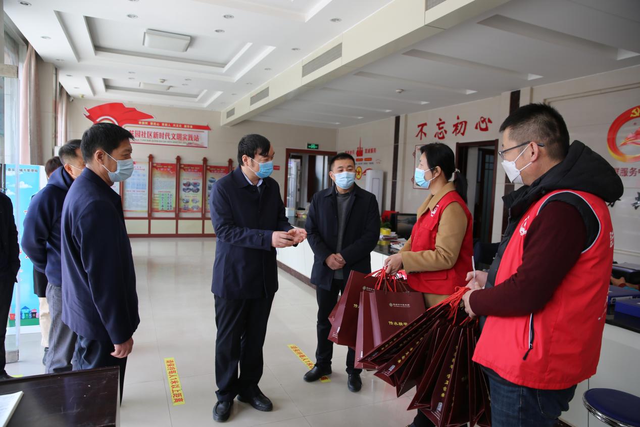 3月11日上午,市卫生健康委联合市中医医院组织开展为一线重点人群发放预防中药助力疫情防控活动。在泰安市泰山西湖服务点、泰山区岱庙街道花园社区,市中医药管理局专职副局长、市红十字会专职副会长姬生勤同志带领委相关科室负责同志和泰安市中医医院有关负责同志将一批防疫中药代茶饮送到执勤民警、医务人员、社区志愿者等一线重点人员手中。