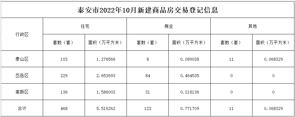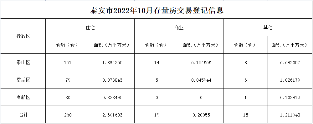 不动产交易数量统计-2022年10月