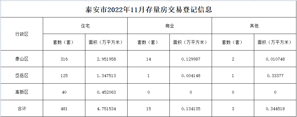不动产交易数量统计-2022年11月